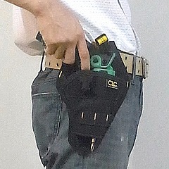 ホルスターに角度をつける事で電動工具の出し入れをスムーズにしています