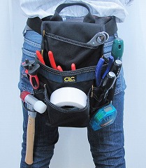 ●小ポケットと挿し込み用ポケットが7つあり、ペンチ、釘セット、鉛筆などが収納可能