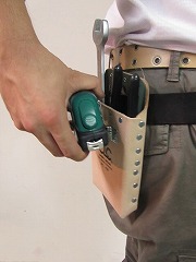 高品質の成型牛革で作られた、型崩れしにくいプロ仕様ポーチ