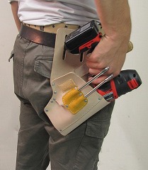ホルスターに角度をつける事で電動工具の出し入れをスムーズにしています