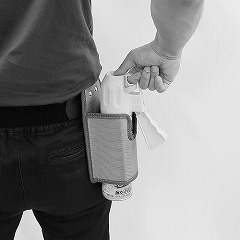 ●ホルスターのスリット部にスプレーのハンドルがしっかりフィットして抜けにくい構造