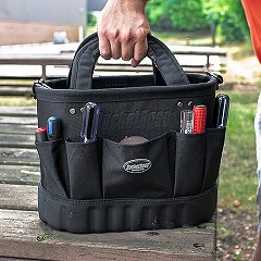 持ち運びしやすく、出し入れしやすい開放タイプのツールバッグ