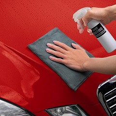 ボディが濡れた状態でコーティング剤をスプレーし、水滴と一緒に拭き上げてください。
