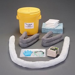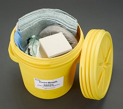 ●水や油などの液体用吸収材と、手袋や保護めがね等の小物が丈夫なバケツに入った便利なキットです。