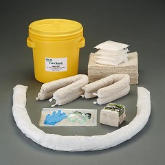 ●油専用吸収材と、手袋や保護めがね等の小物が丈夫なバケツに入った便利なキットです。