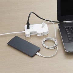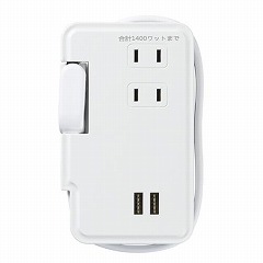 AC100V/2.4A/0.9m 3口タップ(巻取式/USB‐A付)