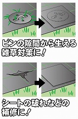 ●シート破れの補修や、シート押さえピンの隙間から生える雑草対策に