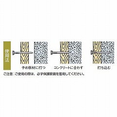 ●通常のコンクリート構築物、れんが、樫木、鉄板及び型鋼物へ釘同様ハンマーで打込めます。
