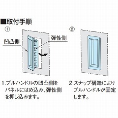 1.プルハンドルの凹凸側をパネルにはめ込み、弾性側を押し込みます。