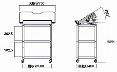●サイズ…600(W)×400(D)×854(H)mm(高さは水平時の天板高さ)