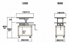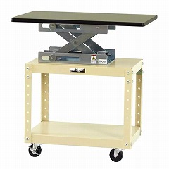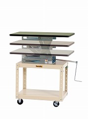●専用ハンドル付属。 ハンドル操作で天板高さを無段階調整できるワゴン