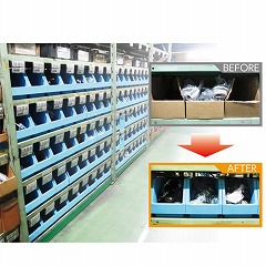 ●様々な種類の部品や小物を、長期に渡り美しく見やすく保管が可能。段ボール箱のような老朽化による箱の変形・破損が無いため、保管ラックの美観をキープします。