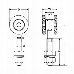 ●サイズ(mm)…D:40、W:32、L:86、W1:19、d:1/2”、E:9.6、F:57
