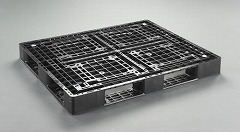 表面は荷物の積載用にフラット形状。裏面は「田」の字形状になっています。裏面の「田」の字はハンドリフトのキャスター逃げ孔として機能し、ハンドリフトでの搬送が可能です。強度を保持しつつ、軽量化を図ったパレットです。