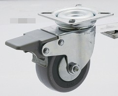 ●ストッパーは、ブラケットの旋回部の回転とホイールの回転を同時にロックします。
