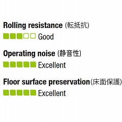 静かな走行性と悪条件の床でも高い走行性を発揮します