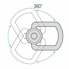 ●ボルトを締め付けた状態で自由に回転しますので、縦引き、斜め引き及び横引き時においても、使用荷重どおりの使用が可能です。