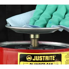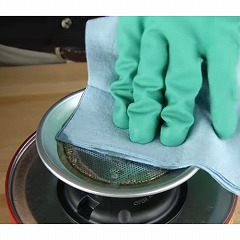 ●受け皿にウェスを当てながら押し込むと、ポンプ作用で液体がメッシュから出てきます。