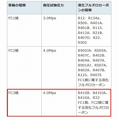 ●適用冷媒FC-3…R410B、R410JA、R410A、R32 FC1類、FC2類に属する液化フルオロカーボン