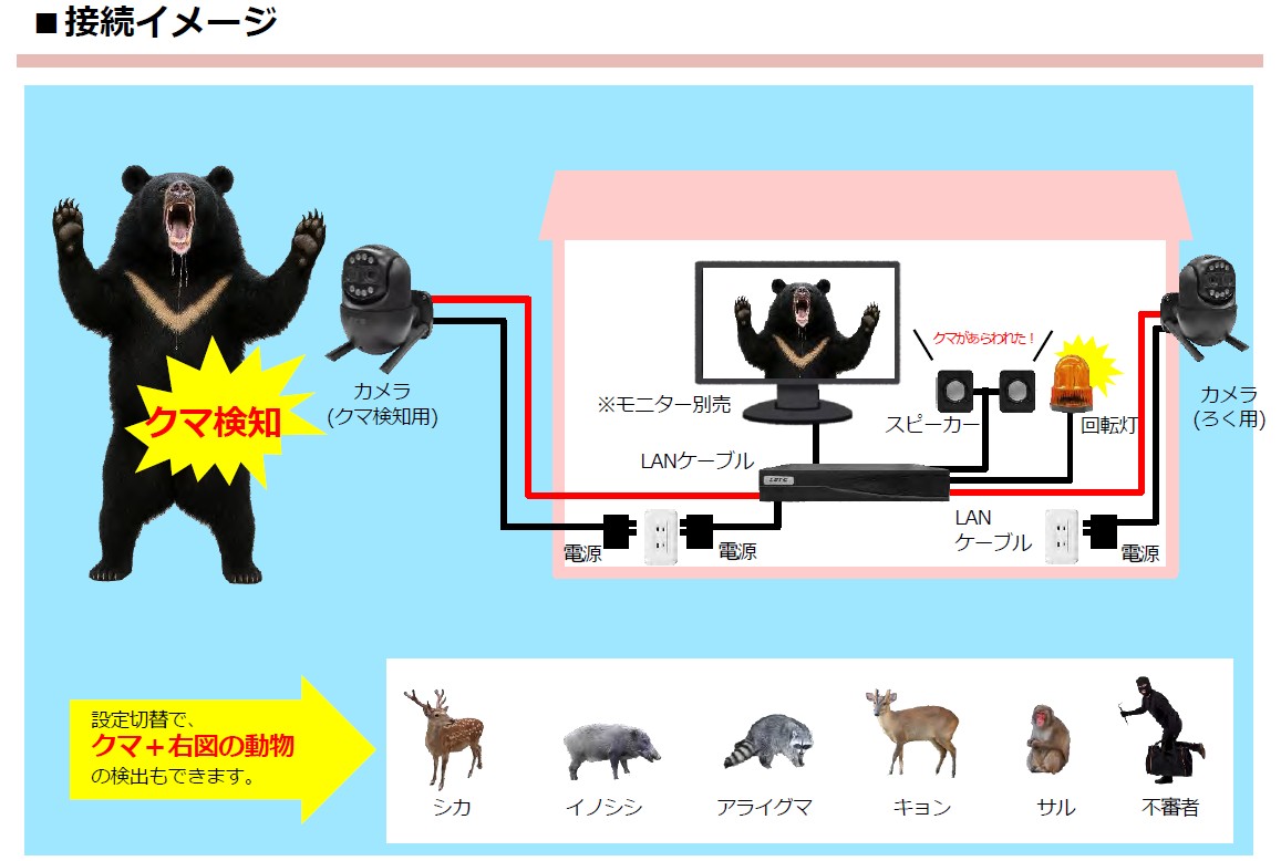 サル・アライグマ・キョン・不審者」を検知する設定も搭載。