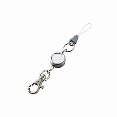 使いたいときだけすっと伸びる!ベルトループやカバンなどに装着可能なフックがついた、コンパクトタイプのコードリールストラップ。