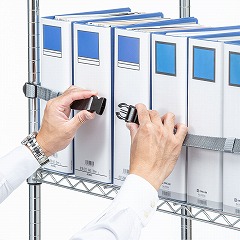 ●オープン棚に収められた書類、ケースなどの収納物の落下を防止するベルトです。