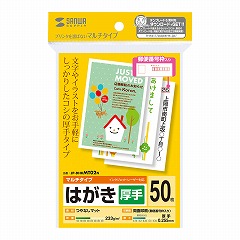 ●インクジェットプリンタ、レーザープリンタなどプリンタを選ばず使えるマルチタイプのはがき。文字やイラスト中心のお手軽印刷に最適。※ただし、インクジェットプリンタで写真画像をきれいに印刷する用途には向きません。