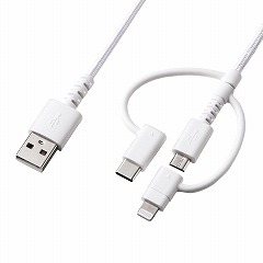 ●2つの変換アダプタ付で、ライトニングケーブル、USB2.0Type-Cケーブル、microUSBケーブルとして使用できる、USBケーブルです。