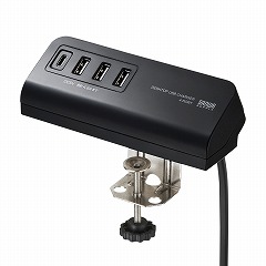 【サンワサプライ】USB充電器 クランプ式 机固定 Type-C1ポート+USB3ポート ブラック