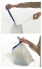 ・巾着タイプのヒモ。両端のヒモを引っ張り、素早く袋の口を閉めて簡単にゴミとして処理できます!
